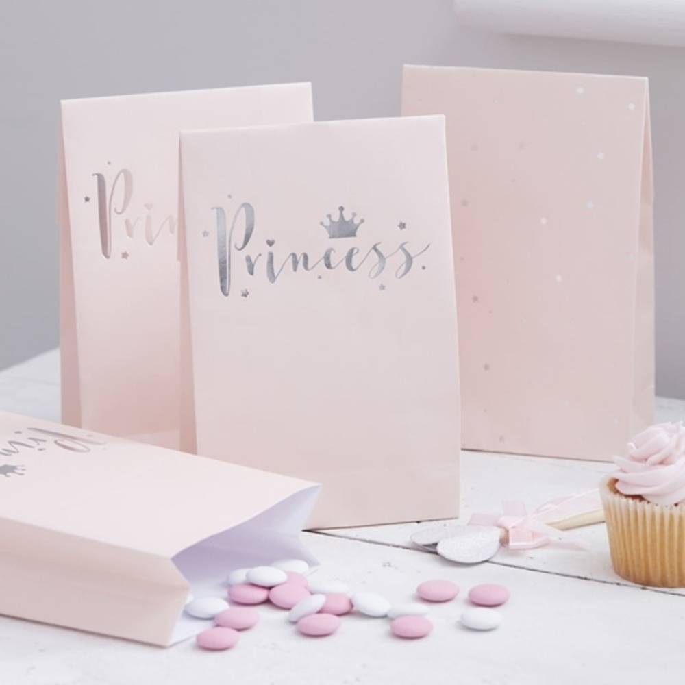 Emb. com 8 sacos prenda de papel com com 12 larg. x 26cm alt. x 5cm base, do tema Princess.