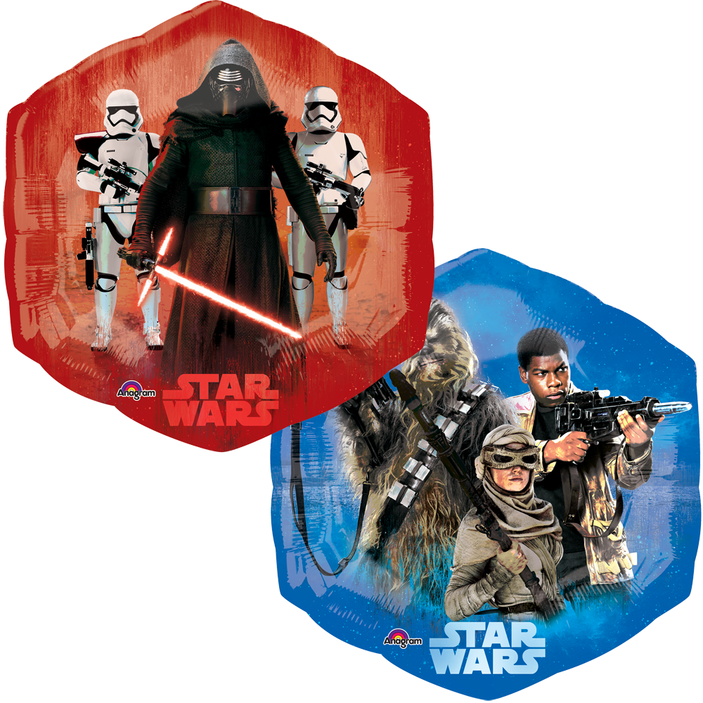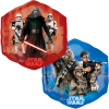 Emb. com um balão folha de alumínio com 55 x 58cm de altura, do tema Star Wars The Force Awakens. Nota: Balão vendido vazio para ser cheio com hélio. Imagem apresentada representa a frente e verso do balão.