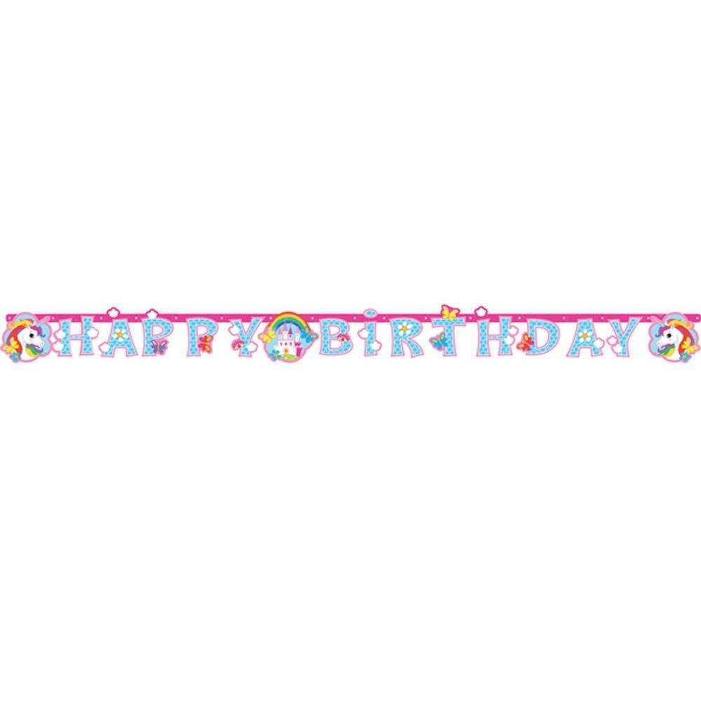 Emb. com uma faixa em papel com a palavra Happy Birthday (letras recortadas) e impressão do Unicórnio Arco-Íris, tem cerca de 1.78cm de comprimento por 11cm de altura. Ideal para a decoração do seu espaço de festa.