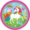 Emb. com 8 pratos em papel de 23cm, do tema Unicórnio Arco-Íris.