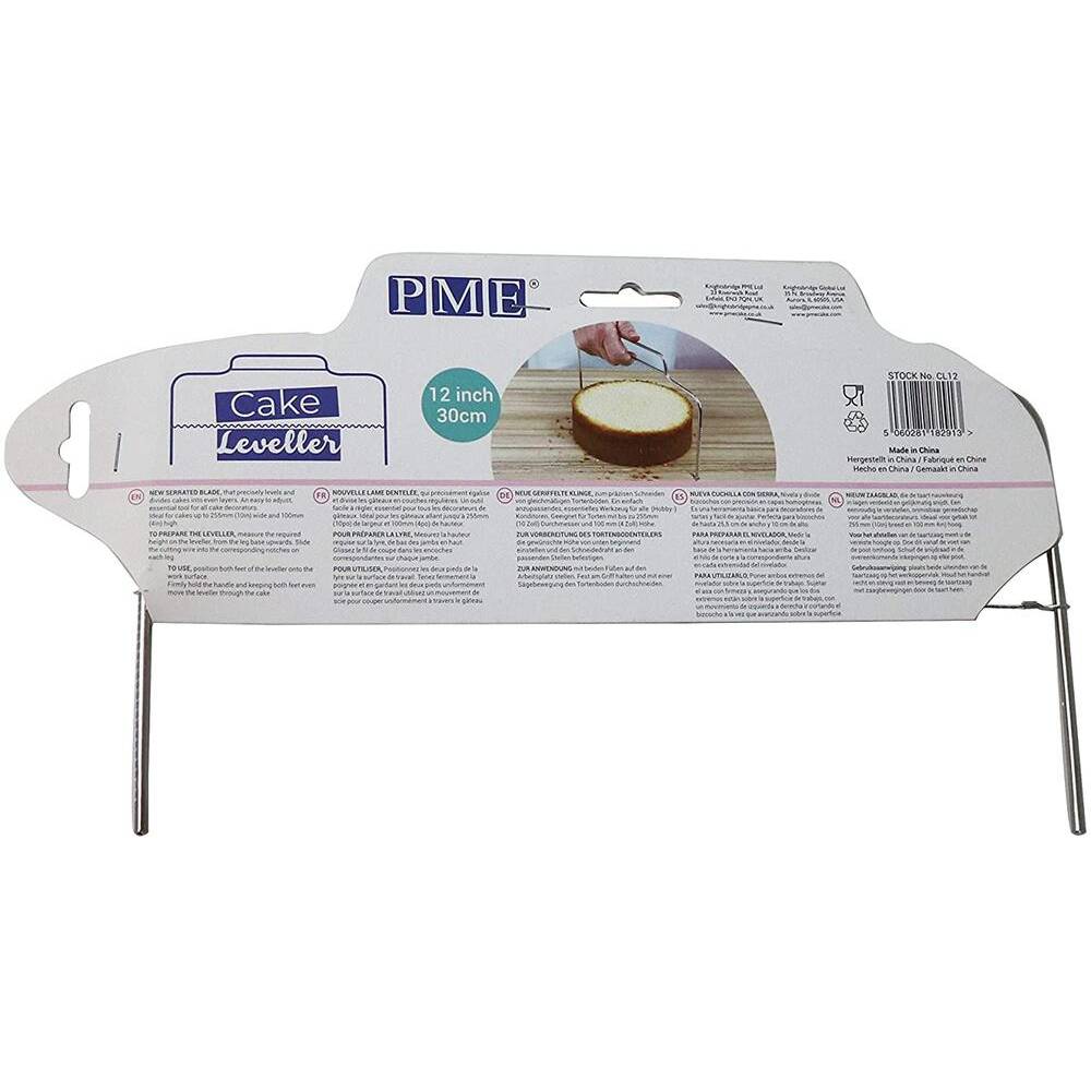Nivelador/corta bolo em ferro com 30cm de comprimento por 15cm de altura sendo que a altura da serra ( incluida na embalagem) pode ser nivelada até ao maximo de 10cm de altura . Ideal para cortar e nivelar os seus bolos.