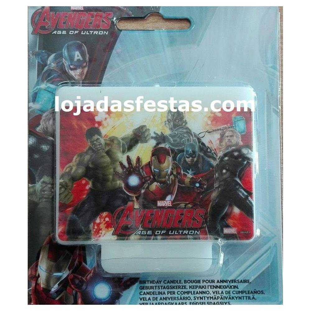 Emb. com uma vela com 9cm de largura por 9cm de altura, com impressão dos Vingadores Age of Ultron.