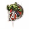 Emb. com uma vela com 9cm de largura por 9cm de altura, com impressão dos Vingadores Age of Ultron.