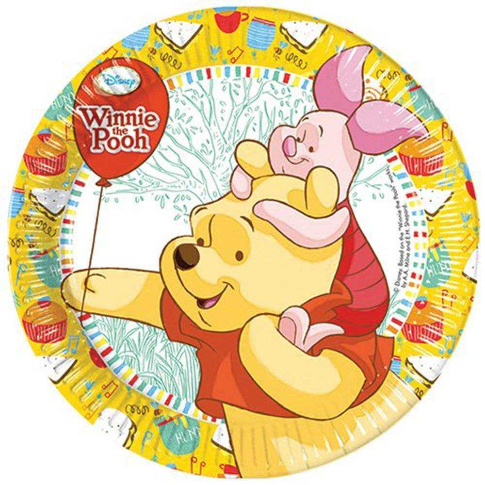 Emb. com 8 pratos de papel com 23cm de diametro do tema Winnie the pooh. Nota: a imagem pode variar consuante o stock disponivel.