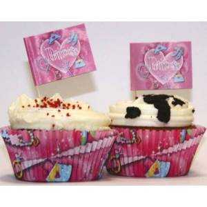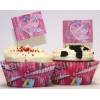 Embalagem com 24 formas de cupcake com impressão das princesas, a forma têm cerca de 7cm de diâmetro.