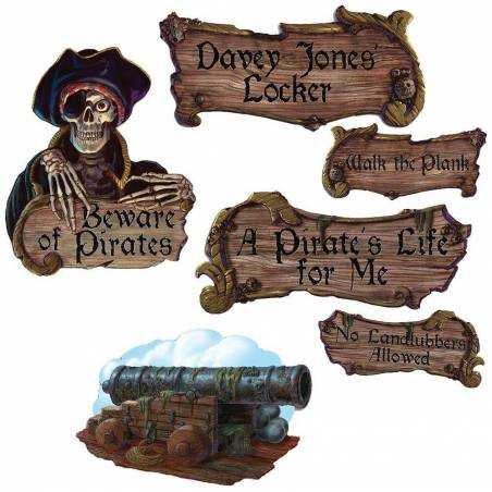 Embalagem com 4 figuras recortadas em cartolina do tema piratas, medidas variam entre 39 - 42cm de altura.