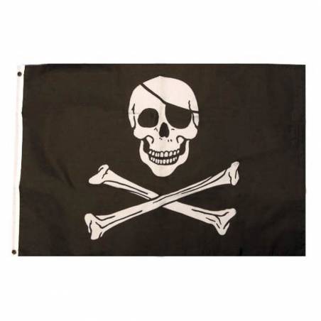 Bandeira de pirata em tecido com 152cm de comprimento x 91cm de altura.