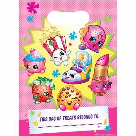 Embalagem com 8 sacos prenda em plástico 17 x 24cm do tema Shopkins.