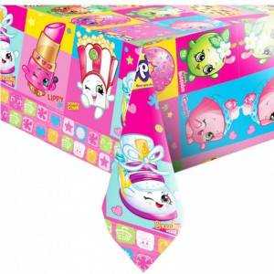 Embalagem com uma toalha em plástico com 138 x 183cm de comprimento, do tema Shopkins.