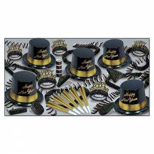 Kit passagem de ano 50 pessoas na cor prata/preto, dourado/preto que inclui;