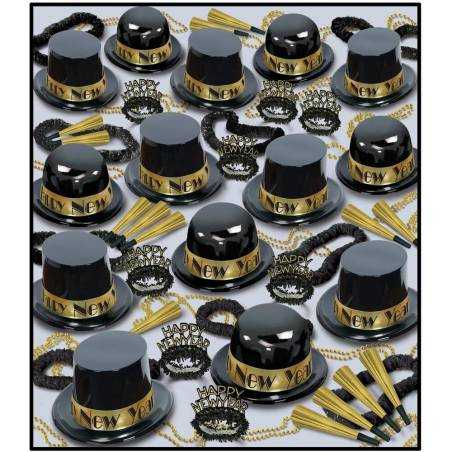 Kit passagem de ano 50 pessoas na cor dourado/preto que inclui;