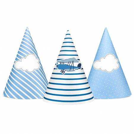 Embalagem com 6 chapéus cone, do tema Aviãozinho.