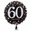 Embalagem com 6 balões de látex 27,5cm de diâmetro nas cores ( dourado, preto e prata) com impressão de Happy Birthday.