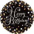 Embalagem com uma toalha de mesa em plástico com 137cm x 259cm, do tema Party Gold.