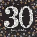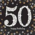 Embalagem com 16 guardanapos em papel de 33cm x 33cm, com impressão de 40 do tema Party Gold.