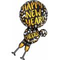 Balão folha de alumínio com 93cm x 170cm na forma de estrelas com a inscrição Happy New Year