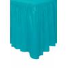 Embalagem com um saiote azul Turquesa de plástico com 73cm de altura por 4.26m de comprimento, este saiote pode ser usado em (casamentos, aniversários , batizados.) é adaptável a mesas redondas ou retangulares até mesmo para mesas ovais.