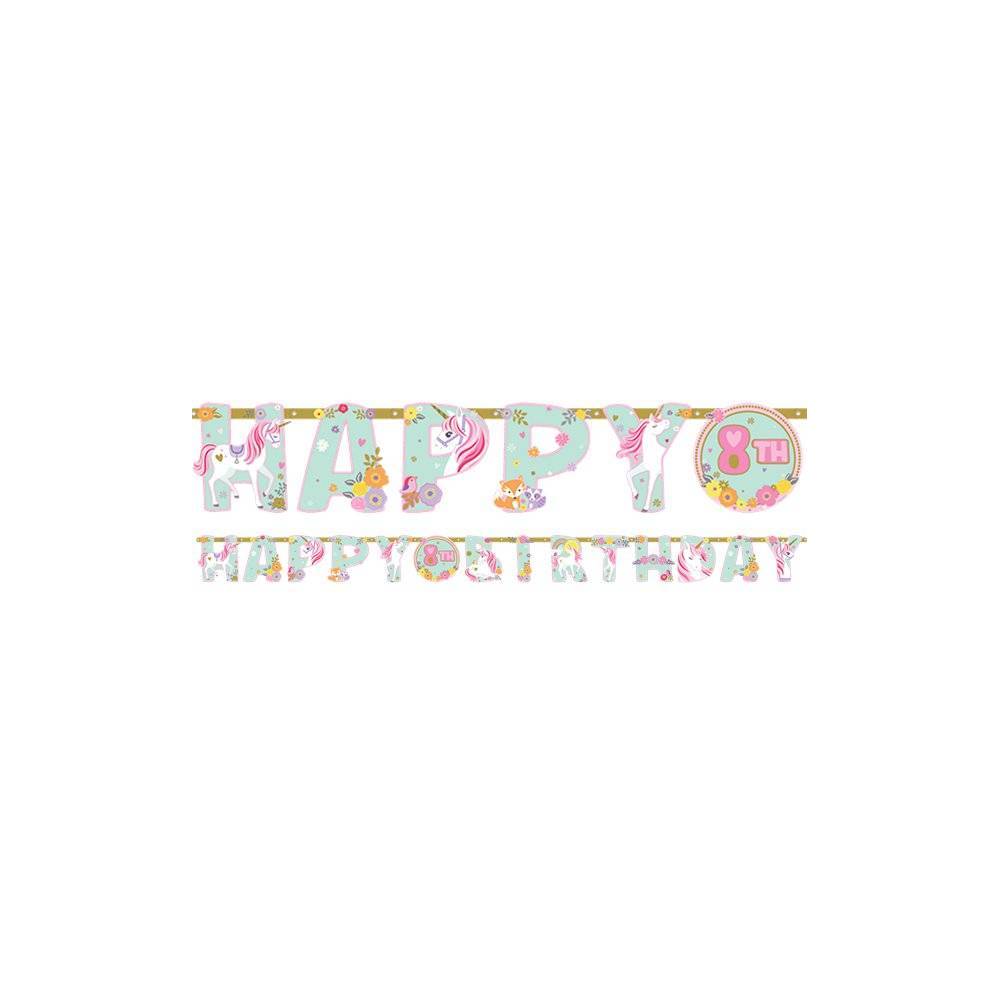 Faixa com 3.20m de comprimento tudo em cartão com impressão do tema Unicórnio Mágico.