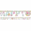 Emb. com uma faixa com a palavra Happy Birthady (letras recortadas) cada letra tem cerca de 25cm de altura inclui números de 0 a 9 repetidos 2 vezes para personalizar o centro da faixa com a idade da aniversariante.